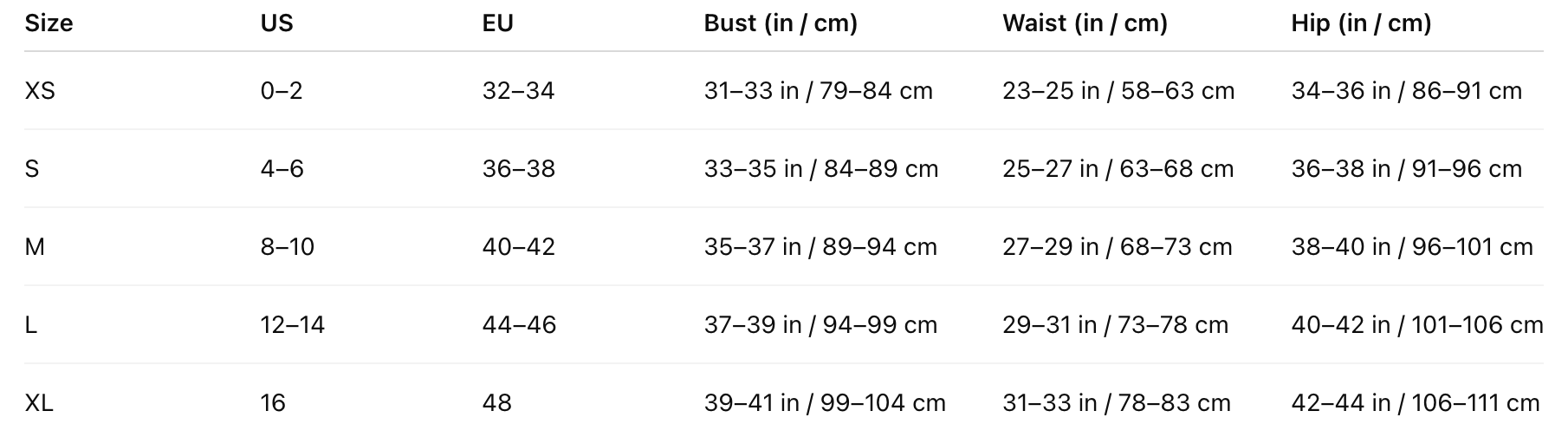 size chart